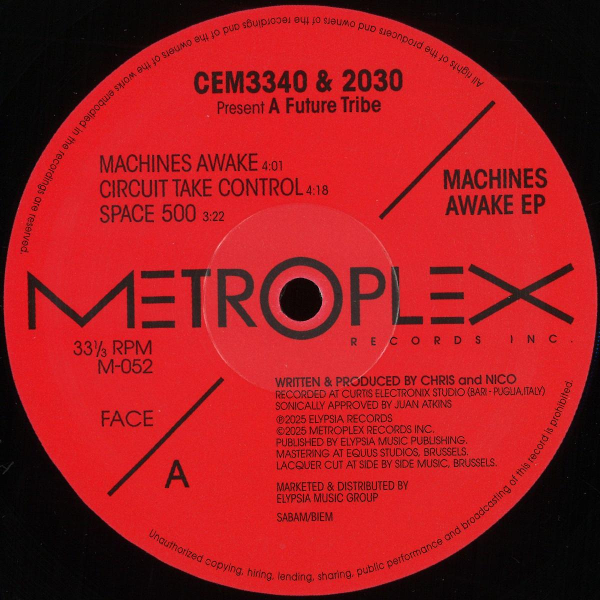 Metroplex is proud to welcome Italian producers CEM3340 & 2030 to the label with the release of their new project "A Future Tribe"and their Machines Awake EP. This five-track release delivers a bold and immersive journey into electro, blending razor-sharp production with deep atmospheres and driving rhythms. Produced at their headquarters in Bari, the EP reflects both artists' precise craftsmanship and forward-looking approach to electronic music. With Machines Awake EP, CEM3340 & 2030 pay homage to the classic foundations of the genre while pushing it into new and exciting territory. Their sound aligns seamlessly with Metroplex's legacy of innovation, and we're thrilled to present this release as part of our ongoing commitment to groundbreaking electronic music. Machines Awake EP is available now across all major platforms.
